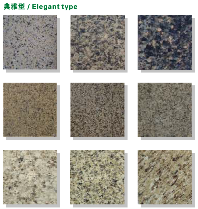 本產(chǎn)品配色豐富、層次分明、色彩穩(wěn)定性佳、質(zhì)感佳,大理石、花崗石、銹石等多種石紋造型,均能輕易呈現(xiàn),是天然石材的替代產(chǎn)品。